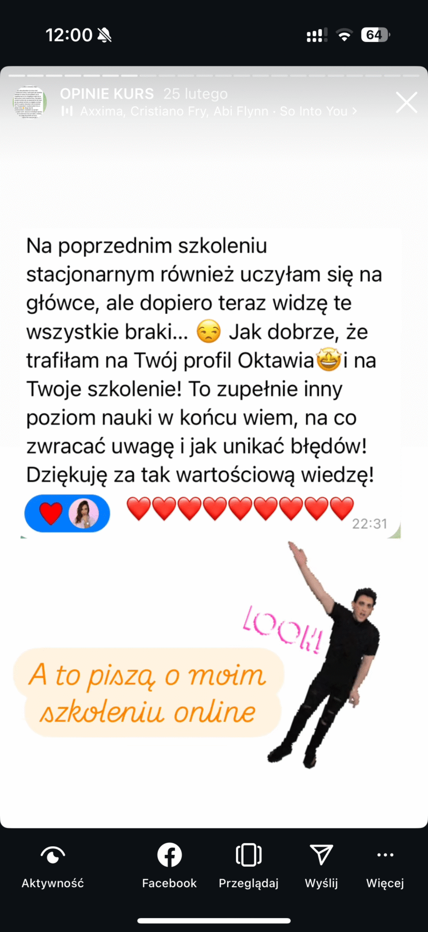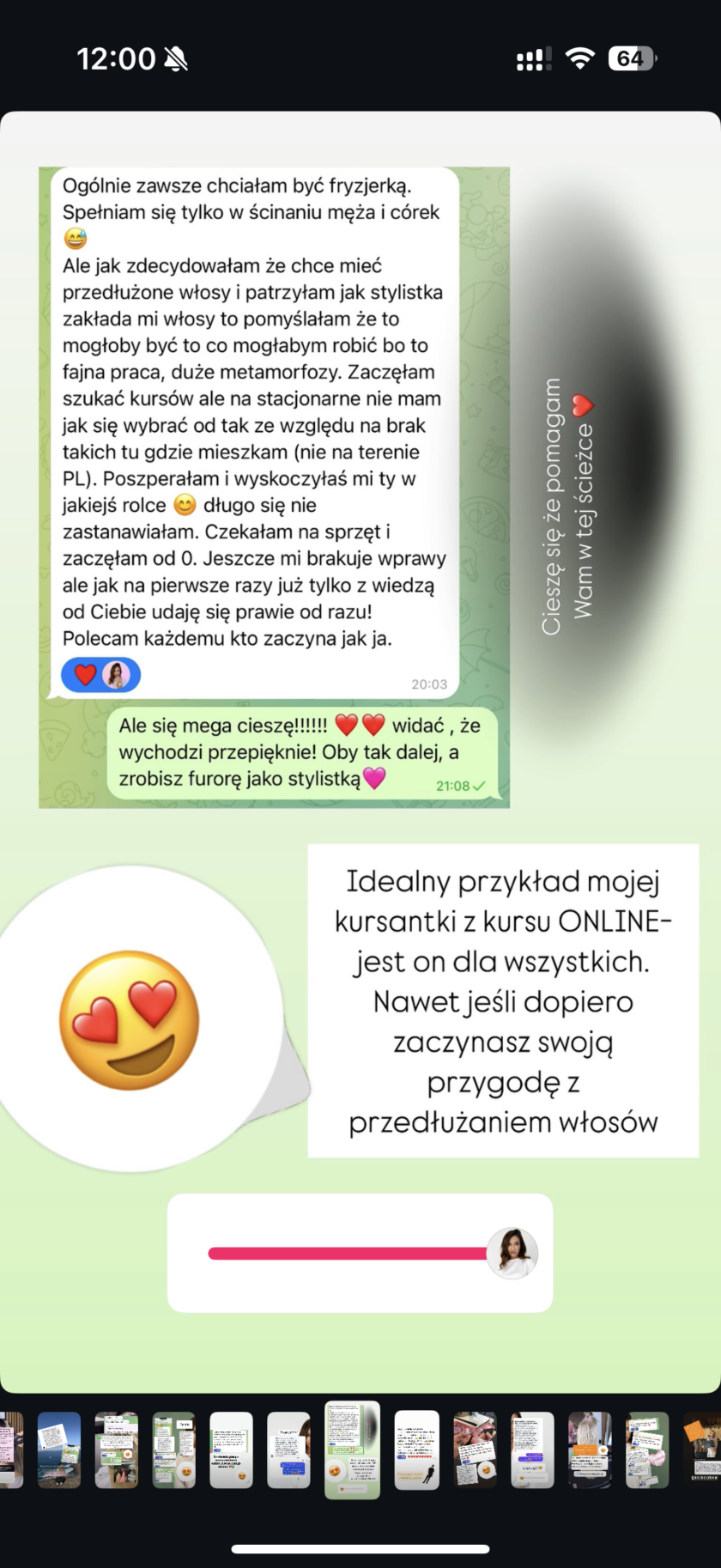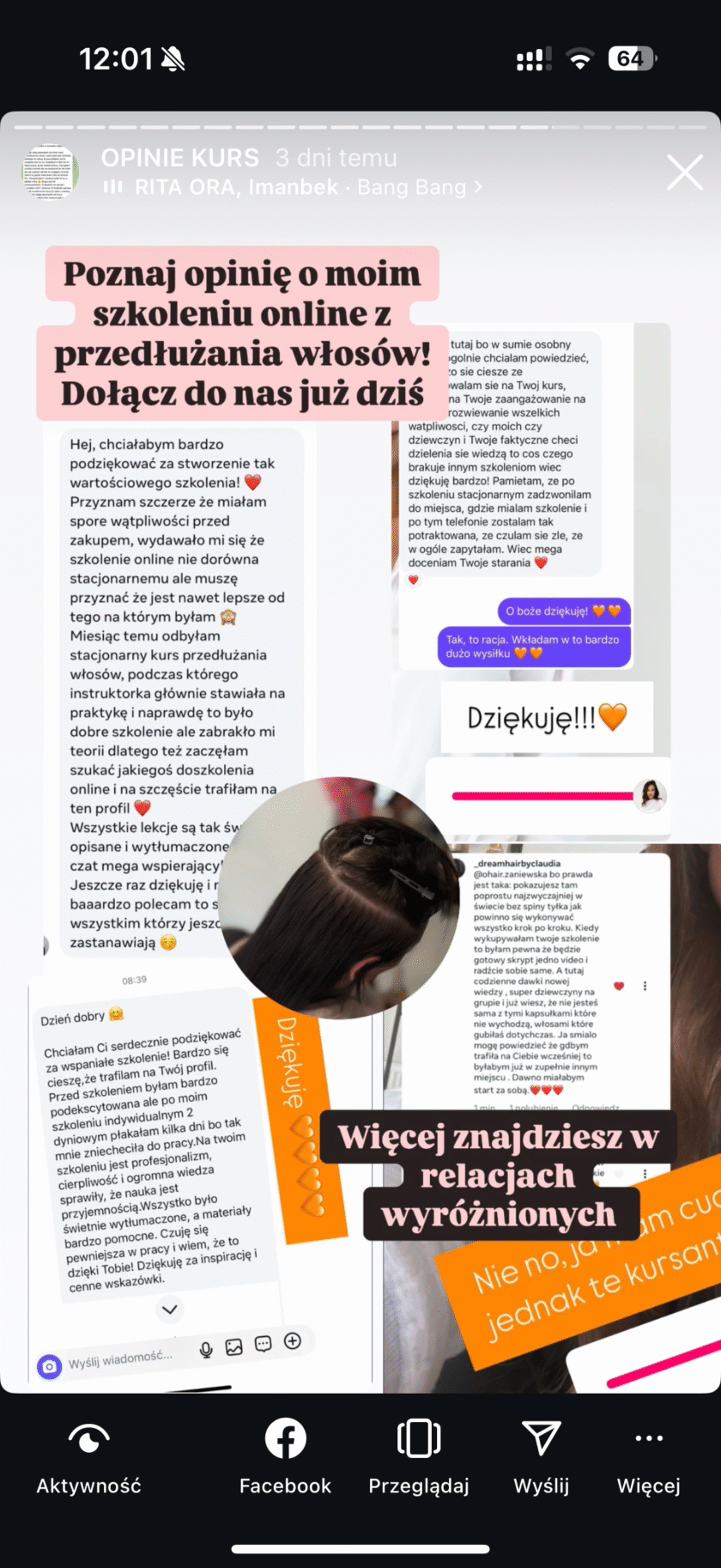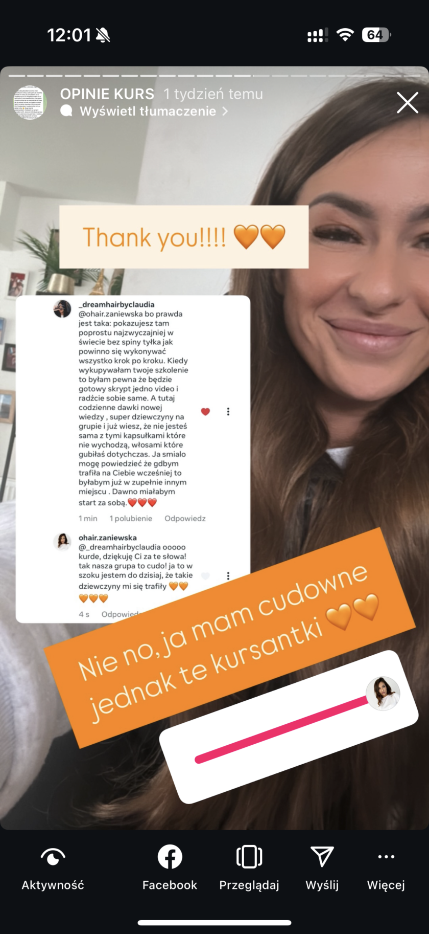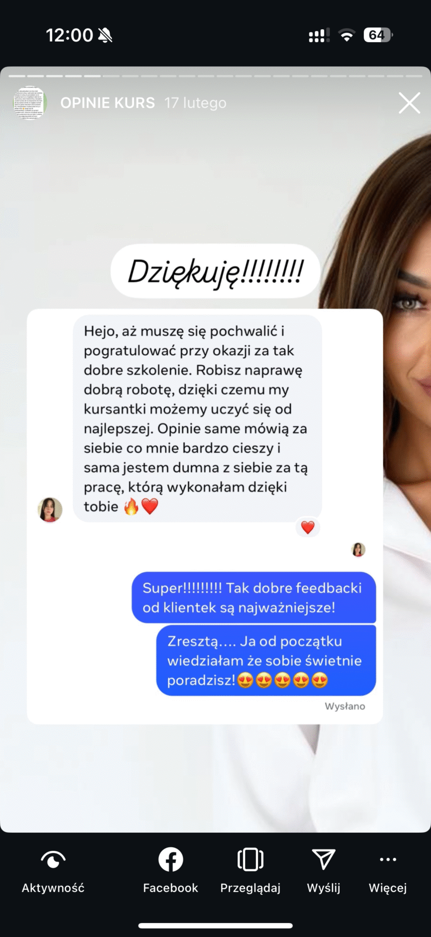 Moje kursy potwierdzają setki pozytywnych opinii, które znajdziesz w relacjach wyróżnionych na moim Instagramie.