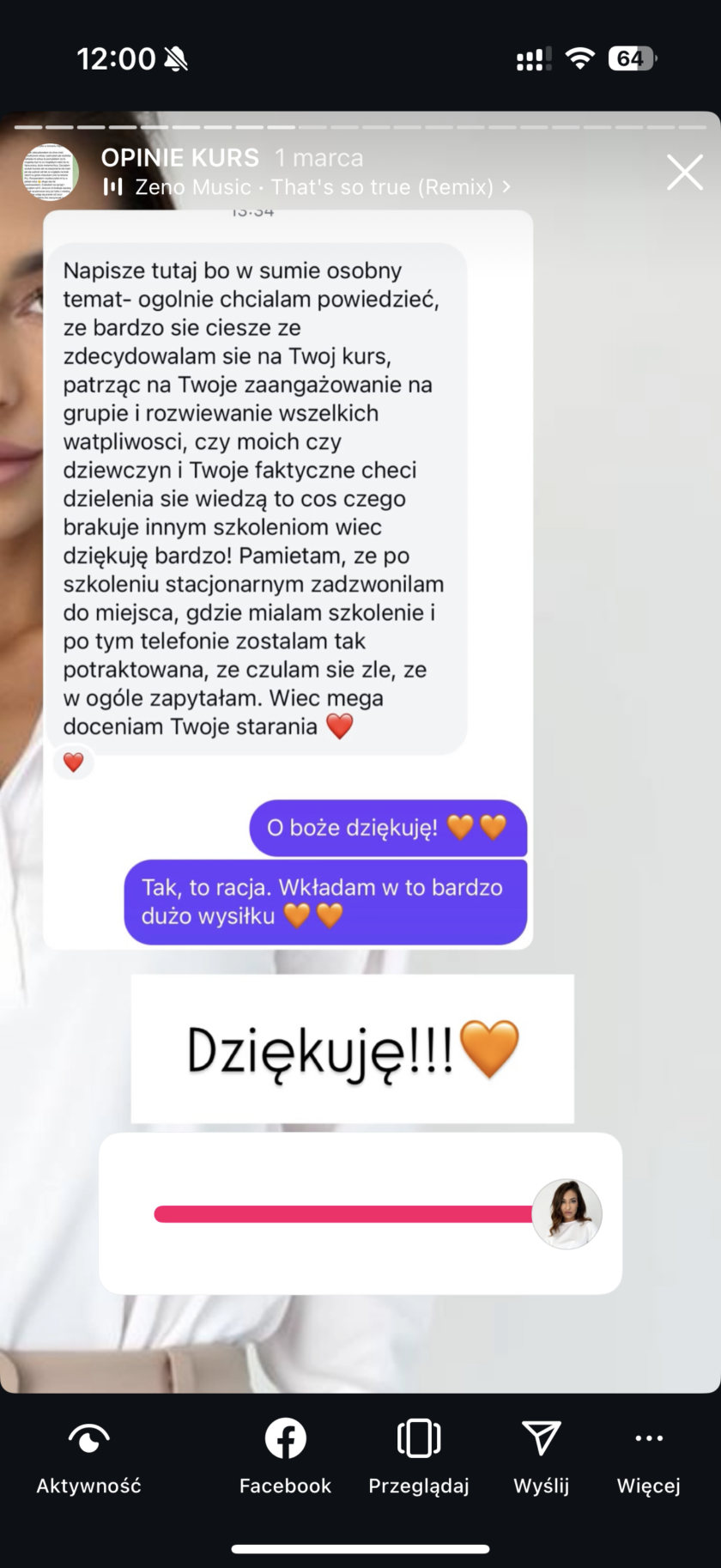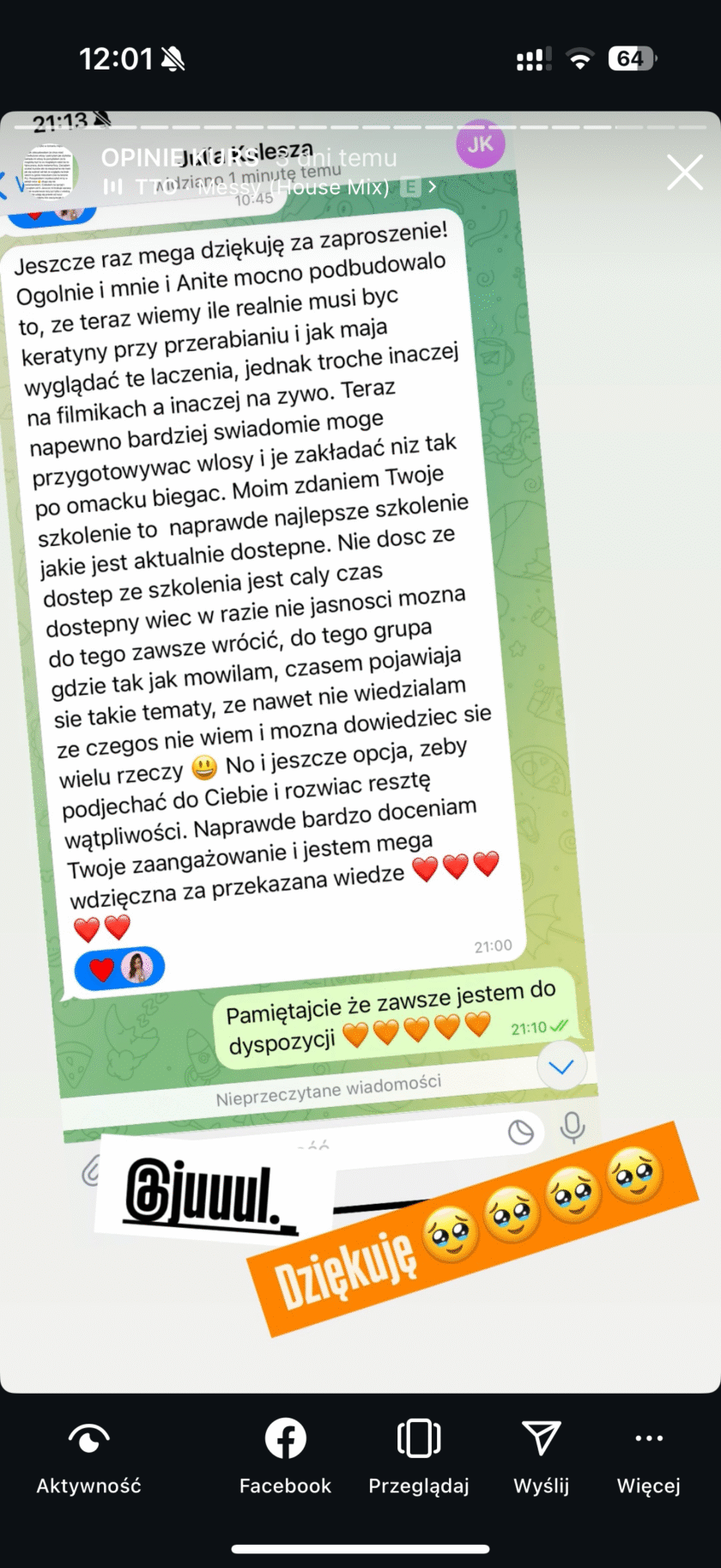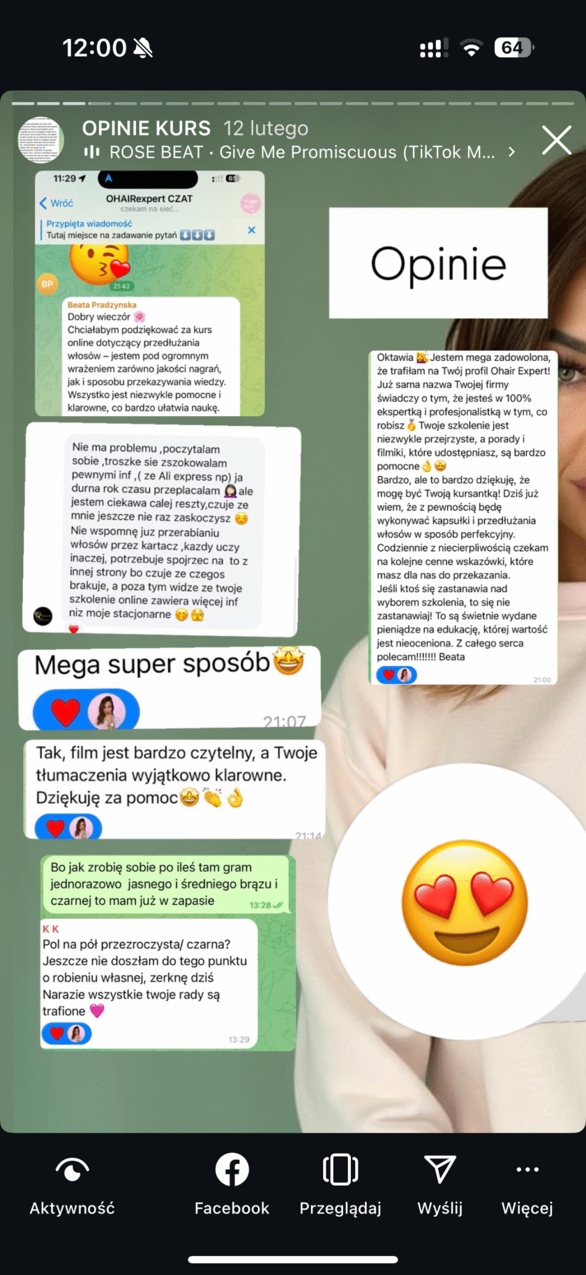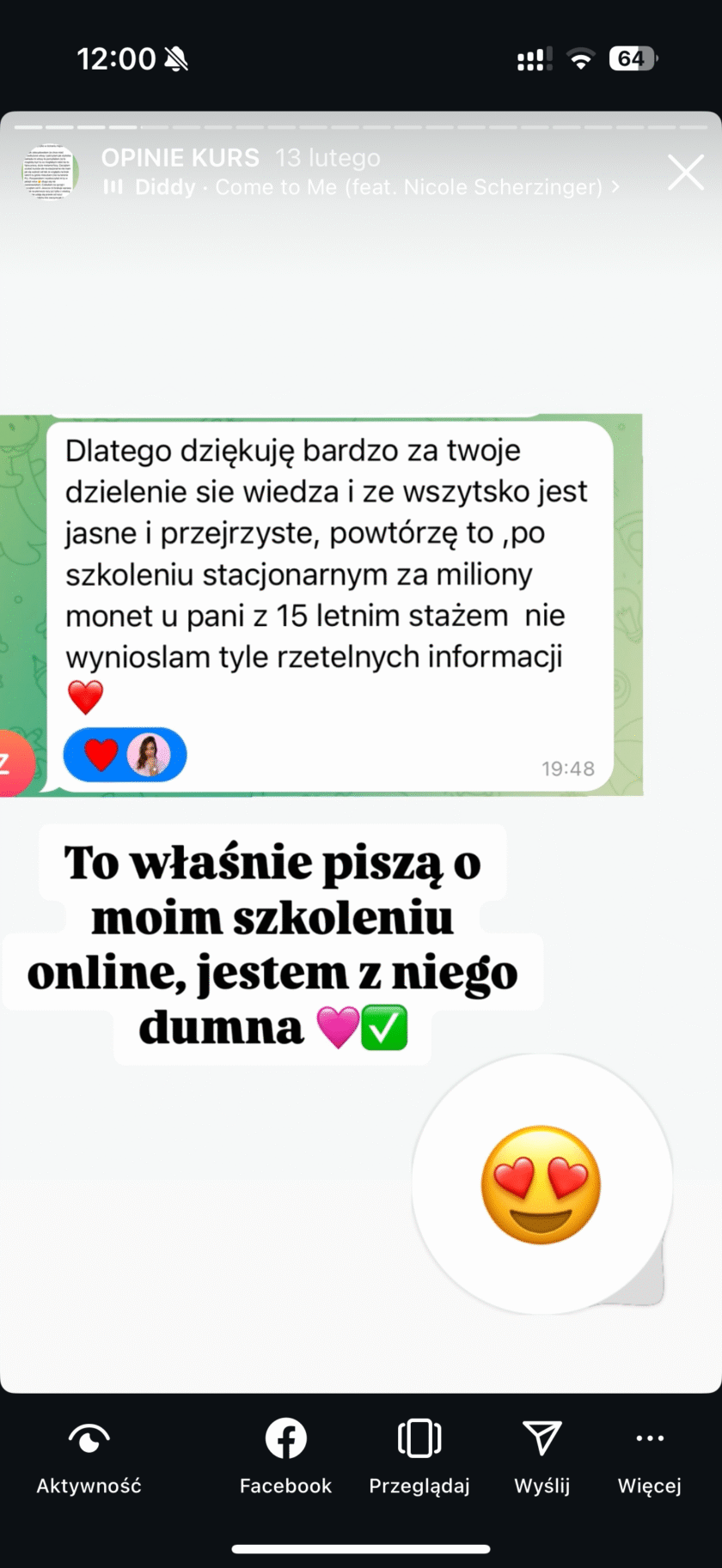 Moje kursy potwierdzają setki pozytywnych opinii, które znajdziesz w relacjach wyróżnionych na moim Instagramie.
