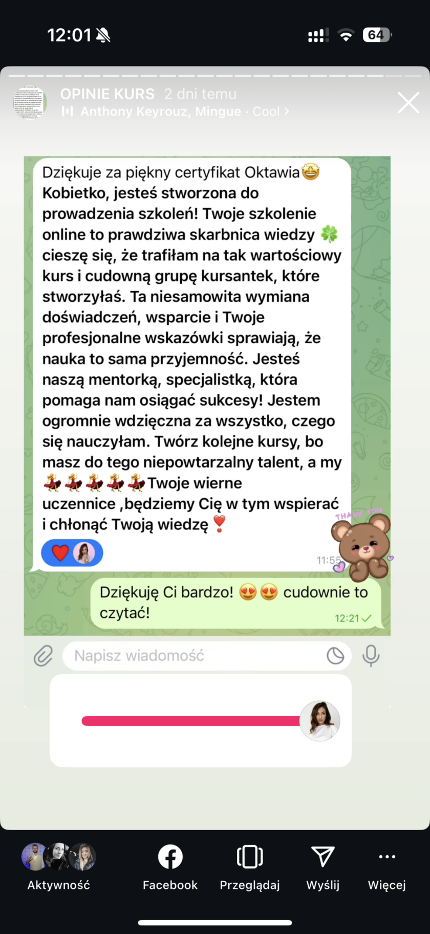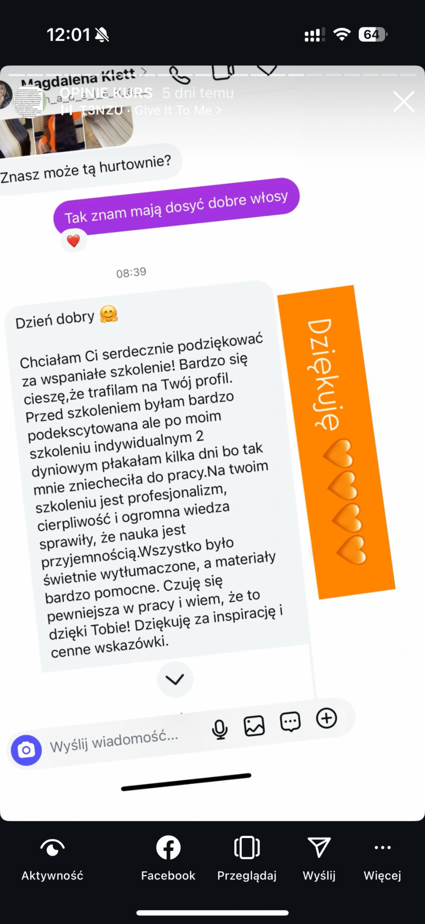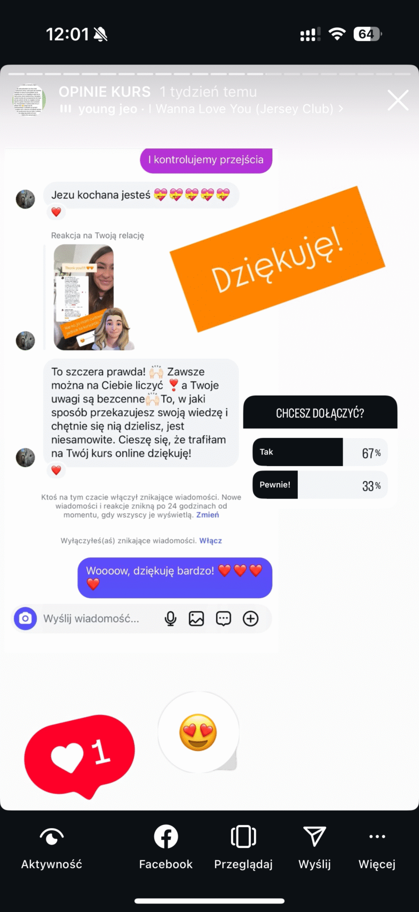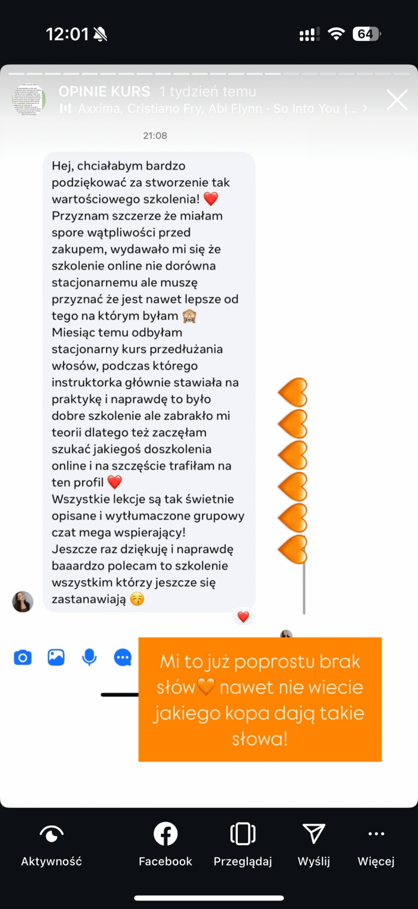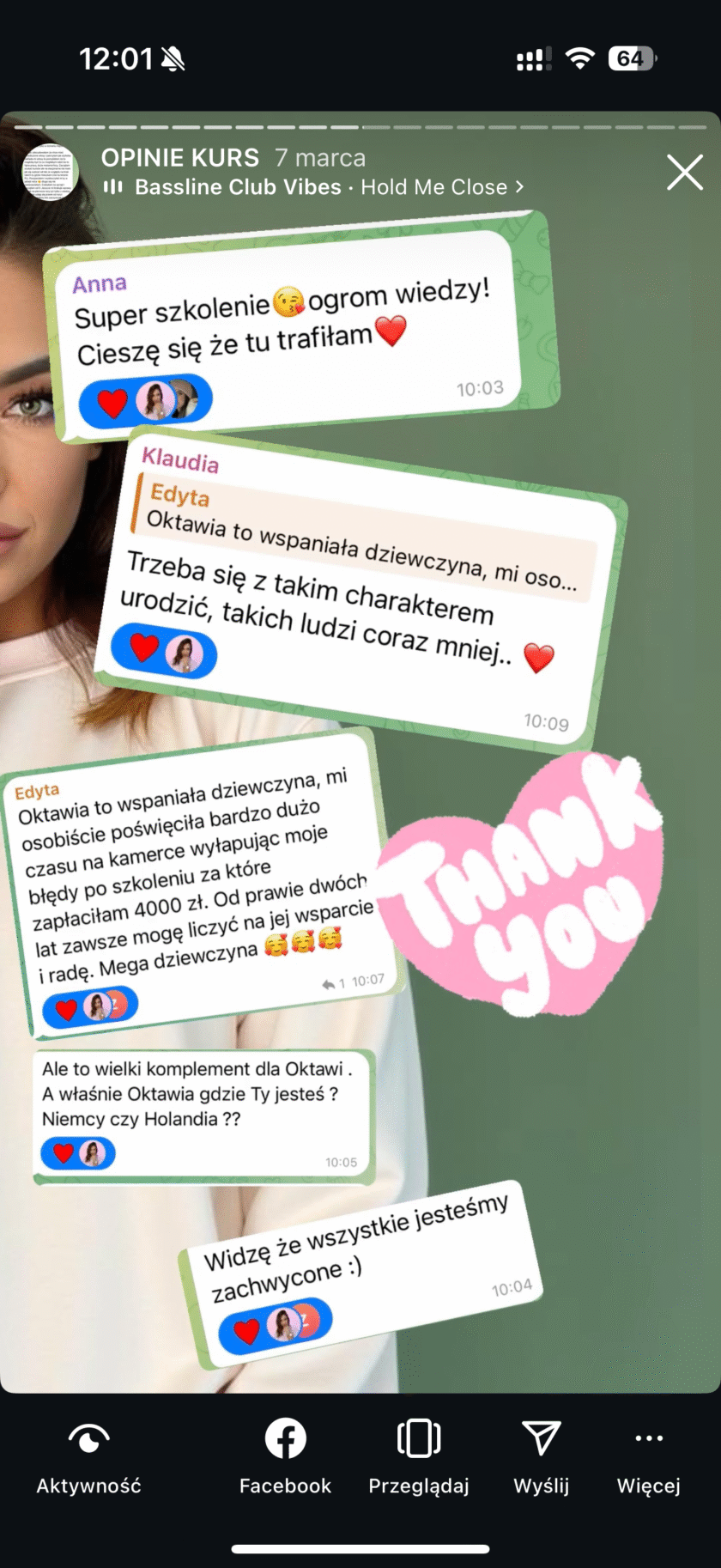 Moje kursy potwierdzają setki pozytywnych opinii, które znajdziesz w relacjach wyróżnionych na moim Instagramie.